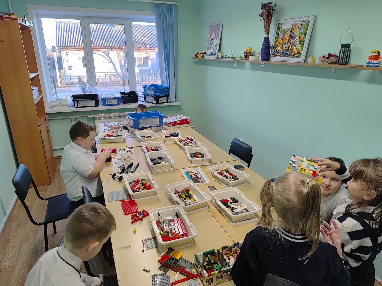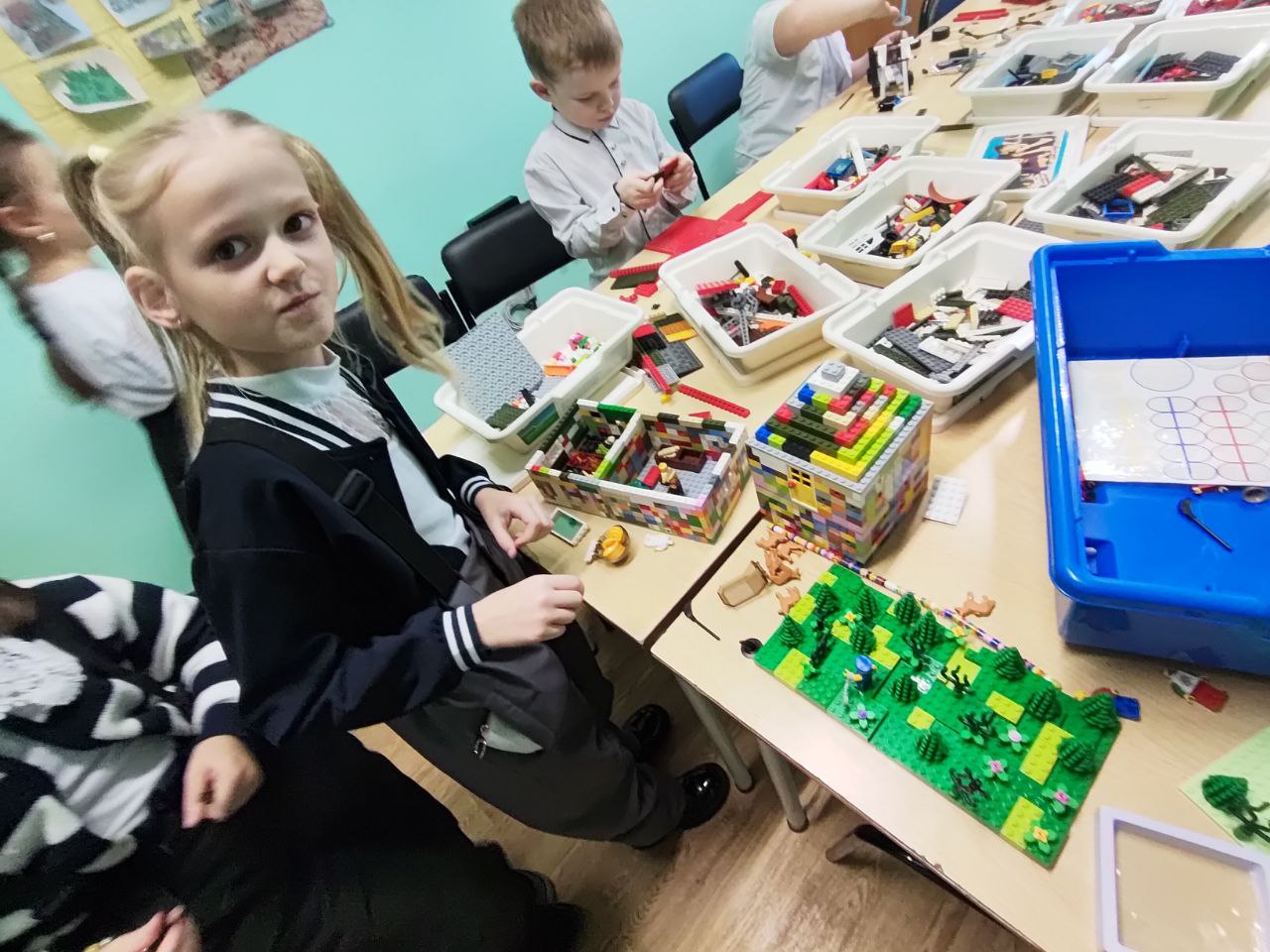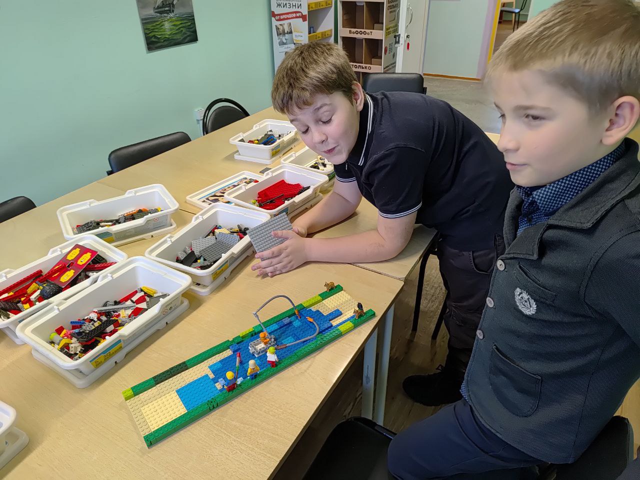 17.11.2025 прошло занятие по легоконструированию. Одни ребята доводили до ума свои прошлые проекты, а другие строили новую тематическую зону — речку с рыбаками.