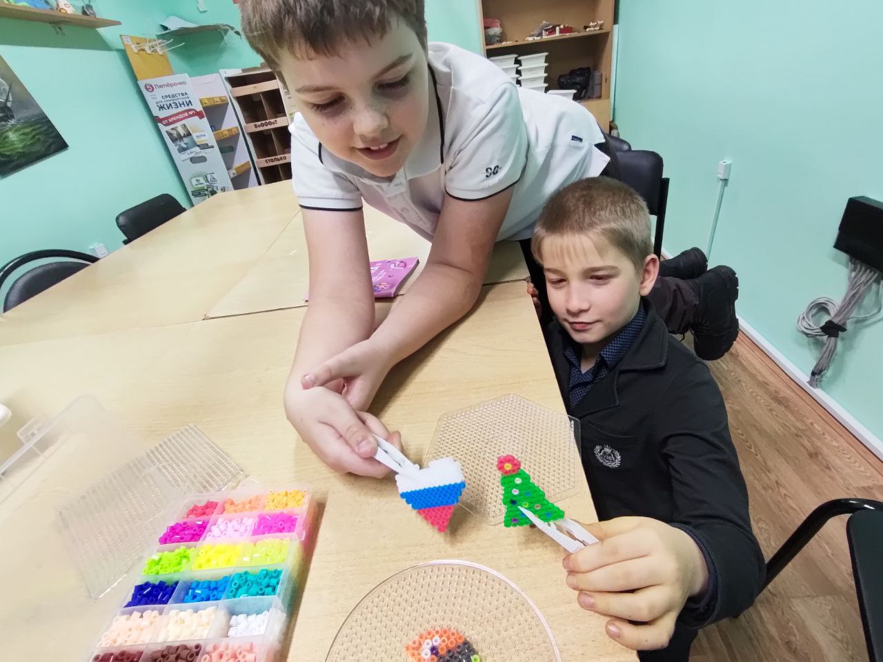 С помощью термомозаики они сделали для участников СВО яркие новогодние сувениры: ёлочки со звездой, сердца в цветах национального флага, деда Мороза.