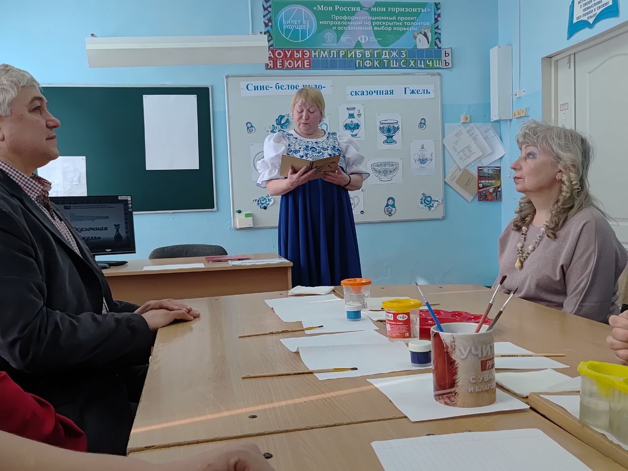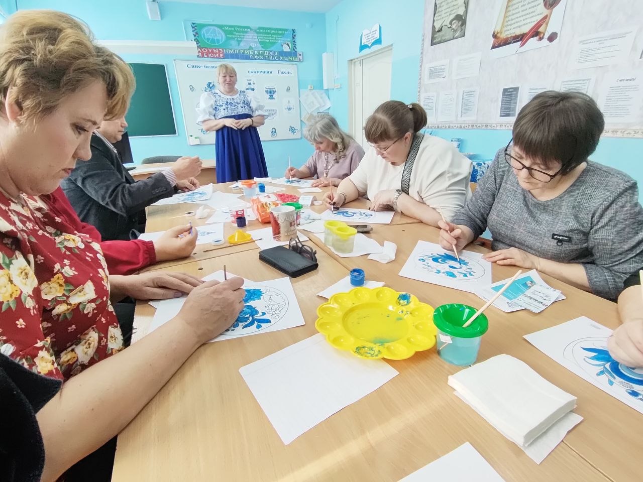 — «Сине-белое чудо. Сказочная Гжель» (культурно-просветительская). Э.А. Холмогорова увлекла всех историей промысла: от истоков до секретов росписи. А завершилось всё творчеством — участники расписывали заготовки по разным трафаретам, погружаясь в мир гжельских узоров.