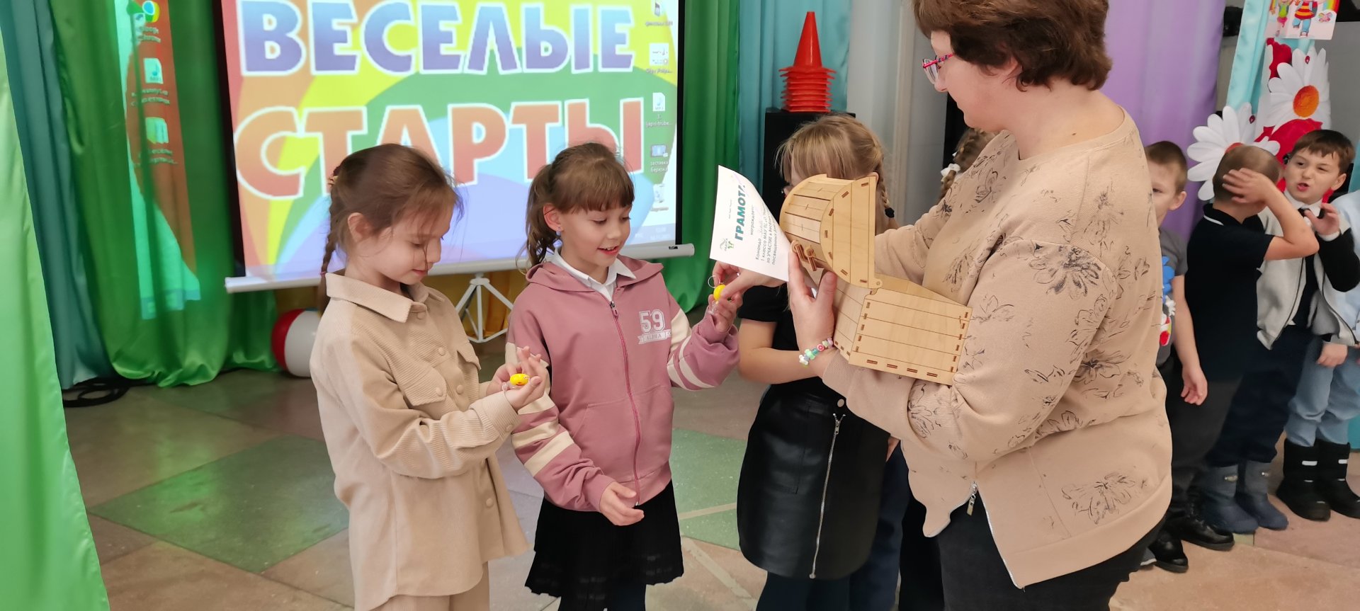 Две команды первого класса Таборинской школы — «Улыбка» и «Добрые лучики» — соревновались не в силе, а в ловкости, дружбе и умении поддерживать друг друга.
