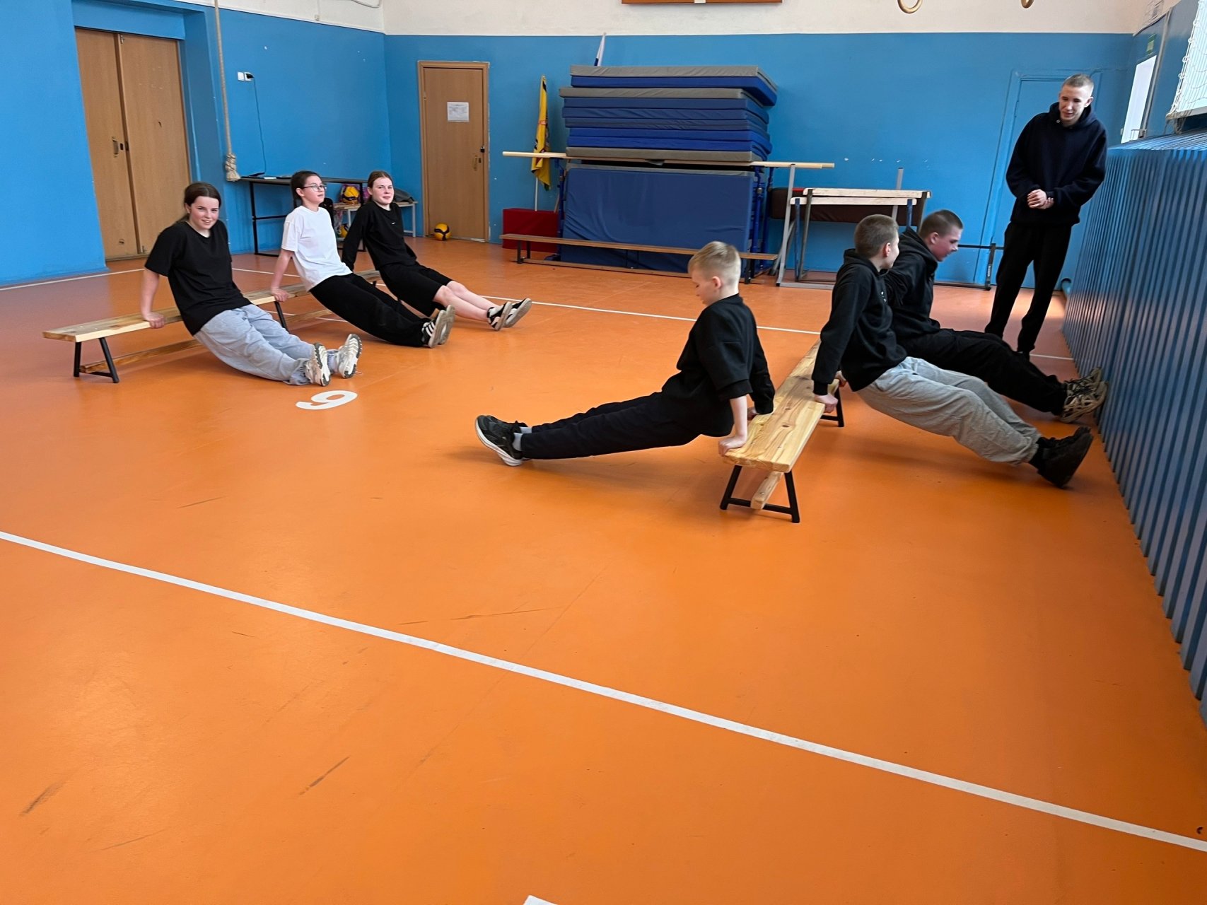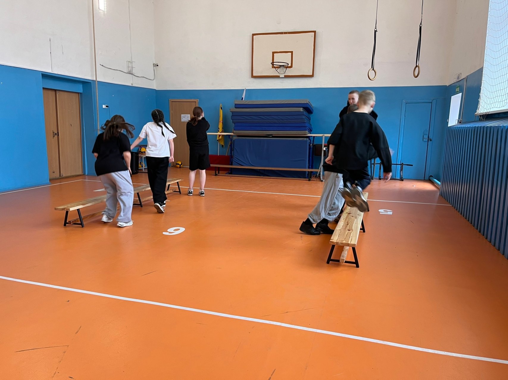 — Прыжки через гимнастическую скамью;